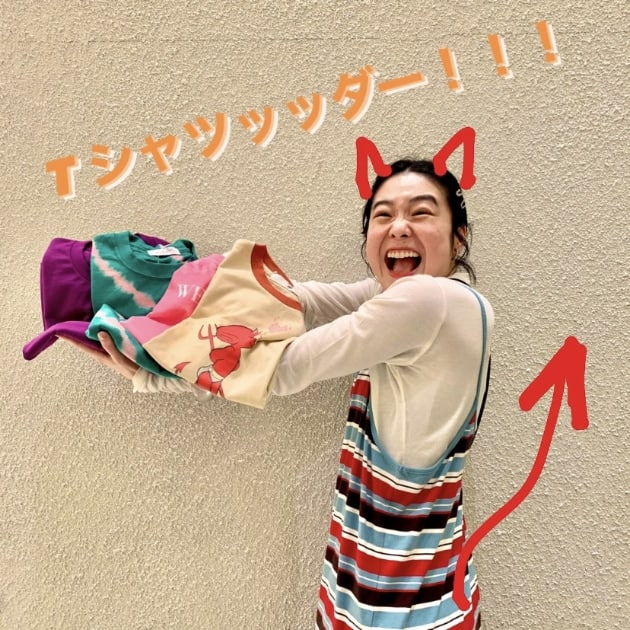 (大先輩のあいどん先輩ことstaff yamashitaにTシャツを持ってもらったところこんなに表情豊かにしてくださいました)