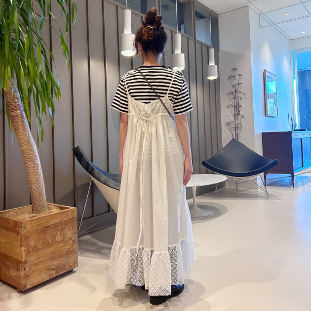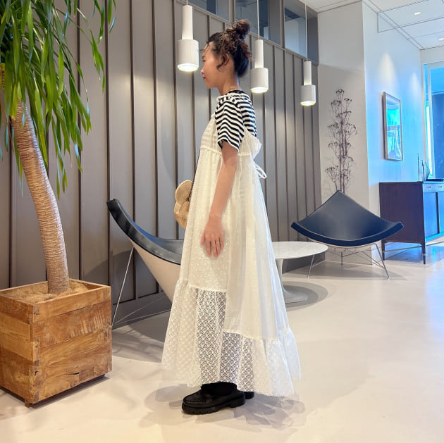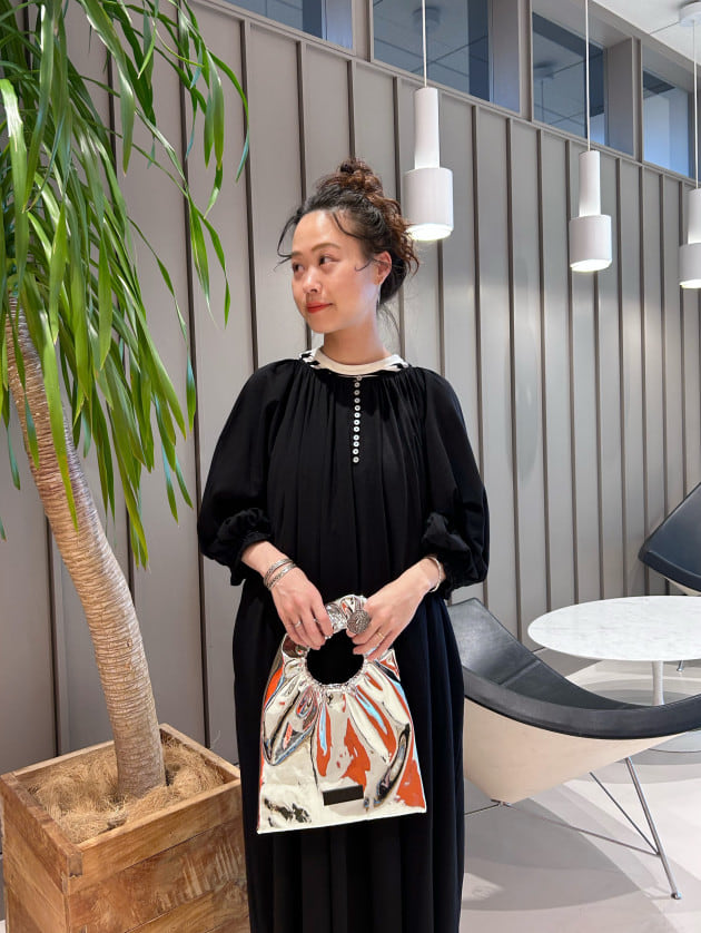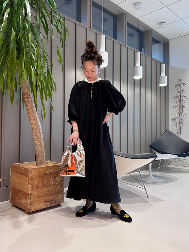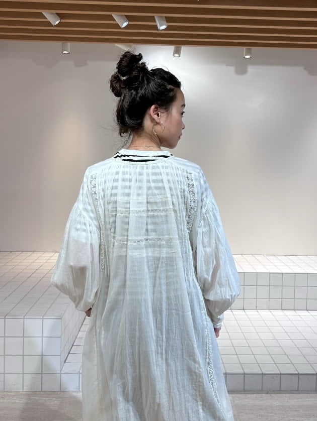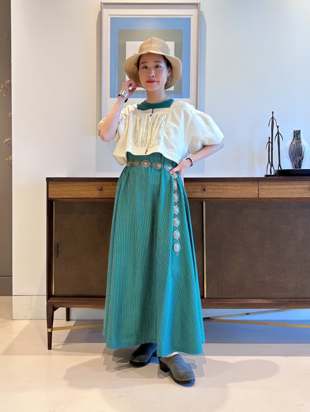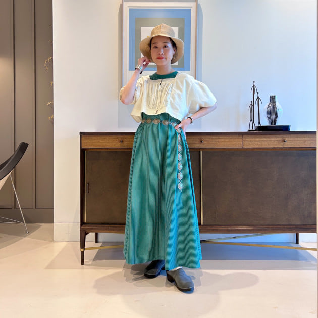 ギャザーがたっぷりございますので、歩くとひらっと靡く綺麗なシルエットがポイント。
