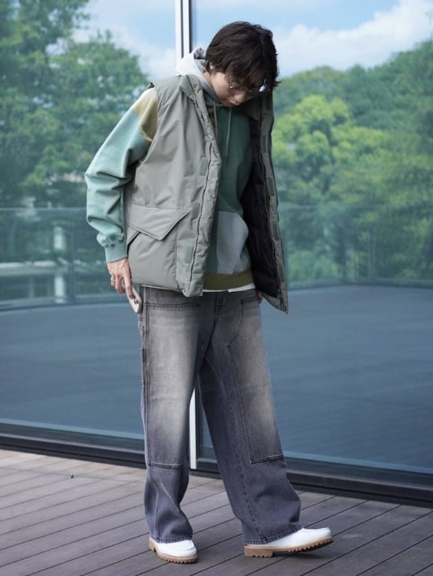 こちらのスタイリングは全体をグレイッシュなトーンでまとめることでフーディー合わせのカジュアルなスタイルを大人っぽくなるよう意識しました!