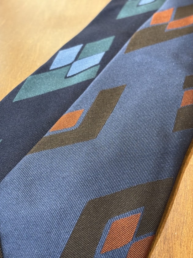 プリントタイです。小紋調のシンプルなスクエアパターンで2色展開。スーツに合わせたいイメージですね。