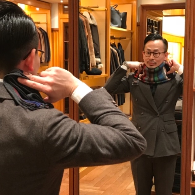 今シーズンは男らしいアウターのアクセントにおすすめ。ほんのりとした甘さのバランス感がこなれています。