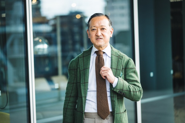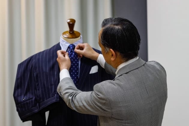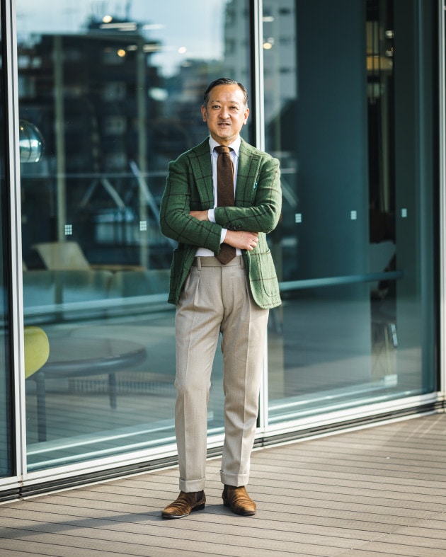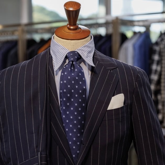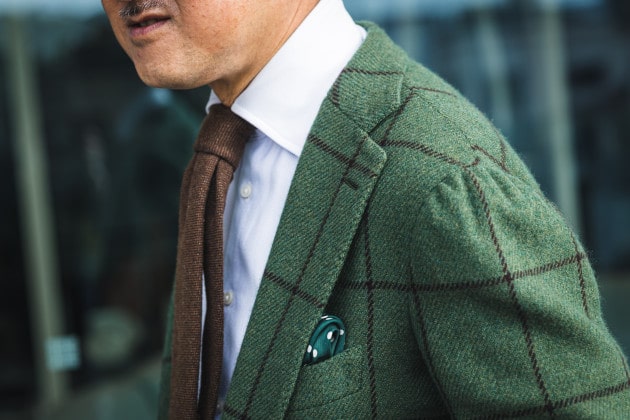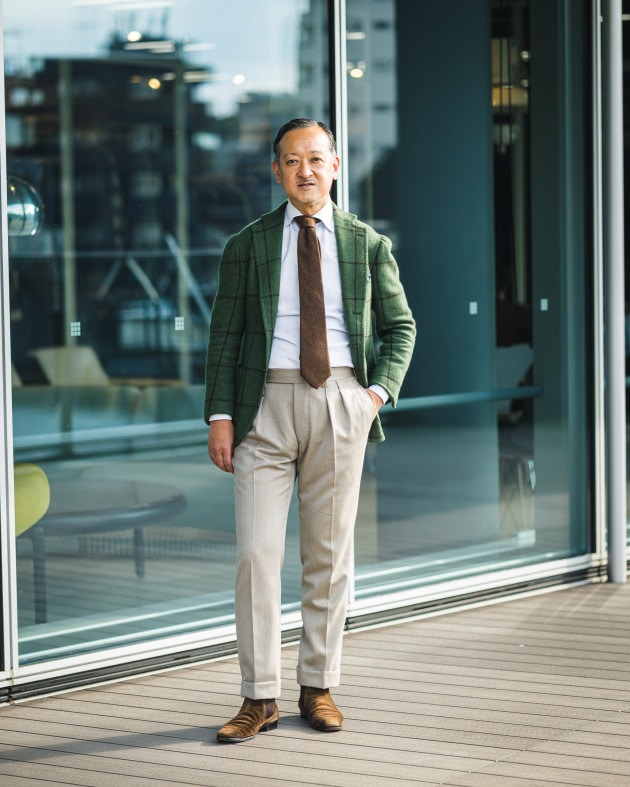 美しいラペルのロール。端正でありながら奥に秘めた色気。紳士のエレガンス漂う品格ある佇まいです。