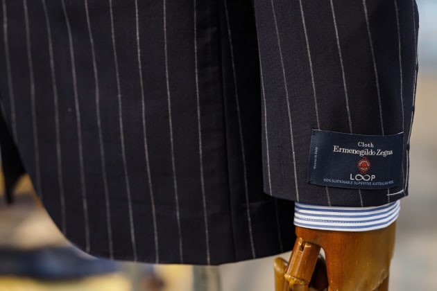 生地には〈ARTHUR HARRISON(アーサーハリソン)〉のウールを使用。ハリのある、ブリティッシュな質感が最高の仕立てをさらに引き立てます。