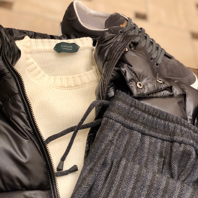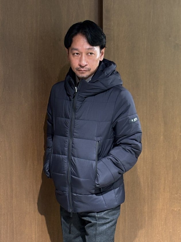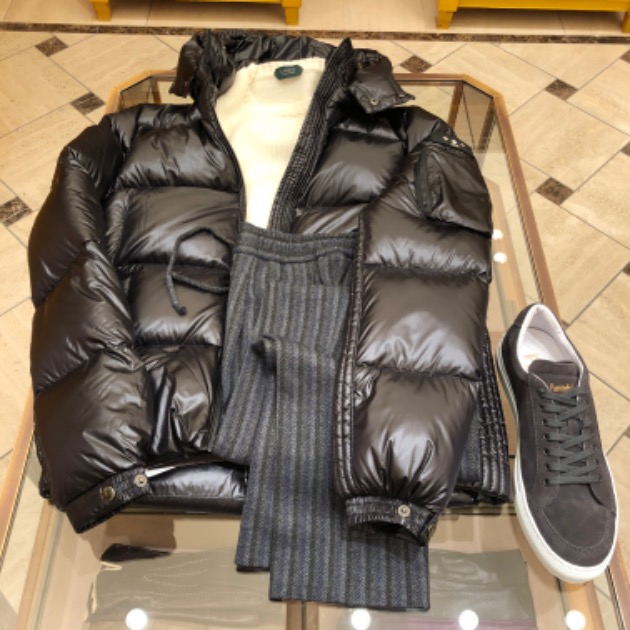 ダウンジャケットですが、ボリューム抑えめのすっきりシルエット。モダンな感じですね。