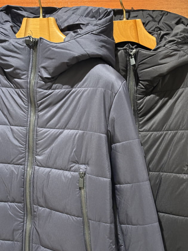ギュっと中綿が詰まっている感じもイイですね。シンプルなダウンジャケットをお探しのお客様にはオススメのモデルです。是非店頭でお試しください。