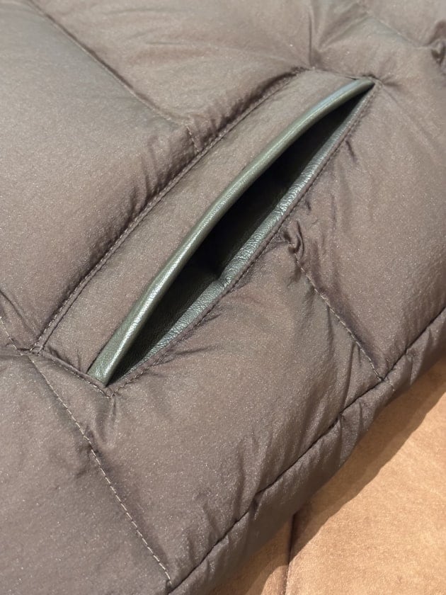 柔らかくキメ細やかな山羊革のスエード。ミルキーなライトベージュの優しい色合いとも相まってラグジュアリーなリラックスムードが漂います。