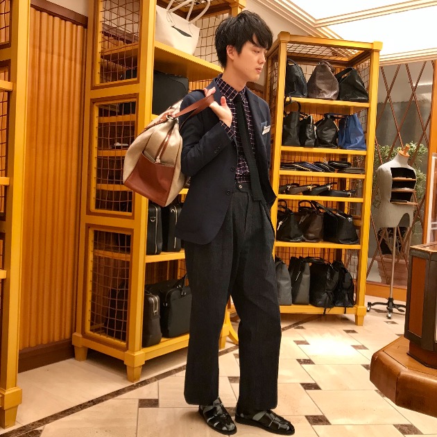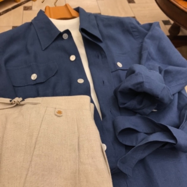 丁寧に鞣されたレザーと今の季節を感じるリネンとのコンビネーションが