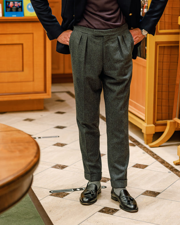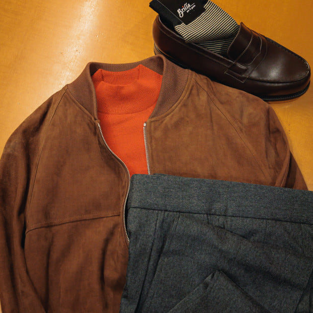 生地は英国〈FOX BROTHERS〉よりウール100%のホップサックを採用。英国らしいハリやコシを持ちつつも比較的柔らかく軽い印象。