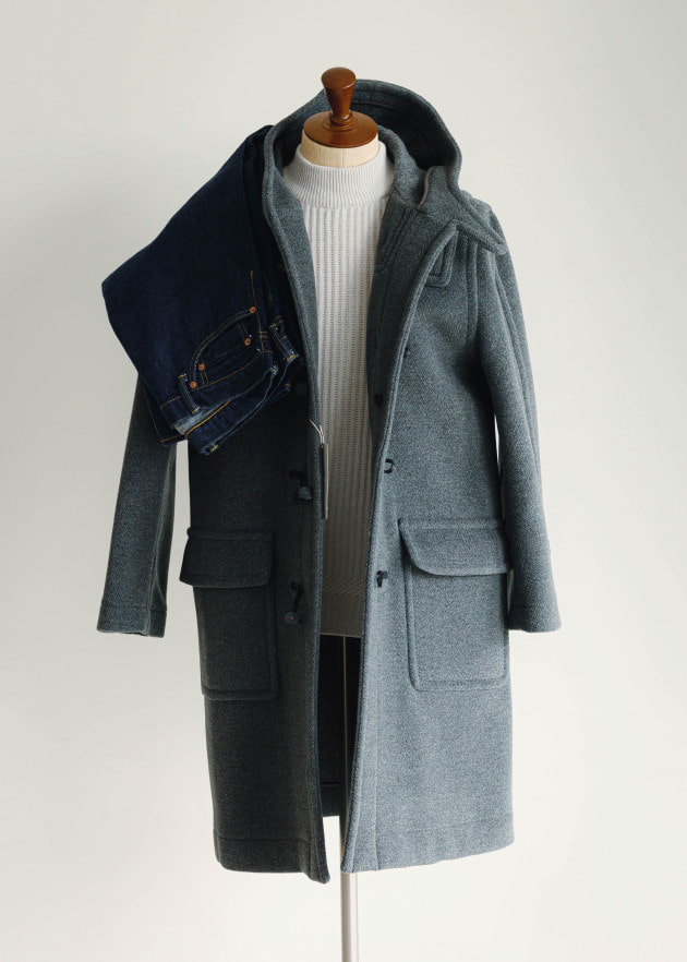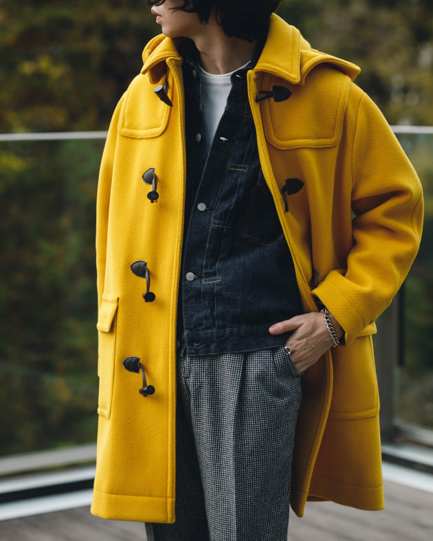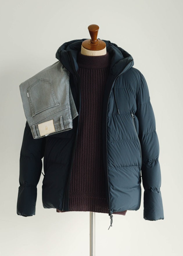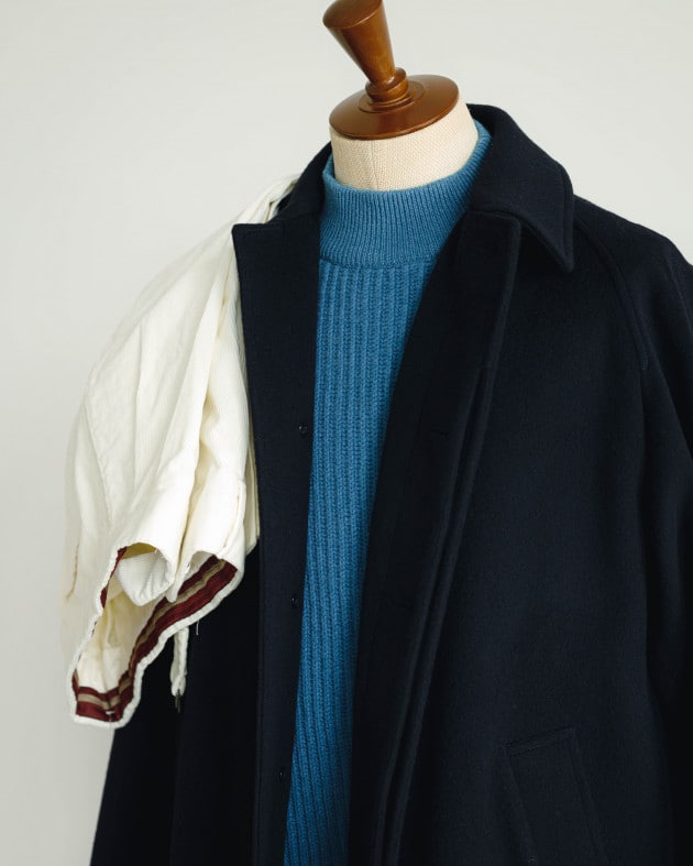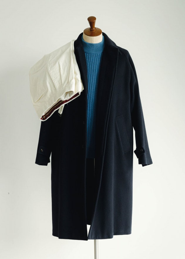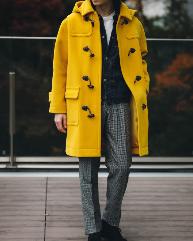 合わせ的にはあまり難しく考えずシンプルコーディネートでいいかな、という印象です。ウールスラックスを合わせるとクリーンなカジュアルスタイルに。