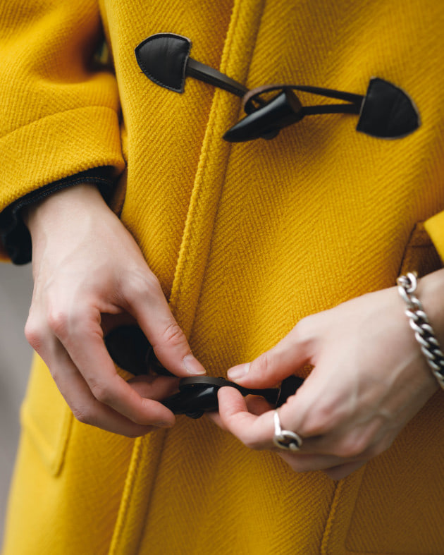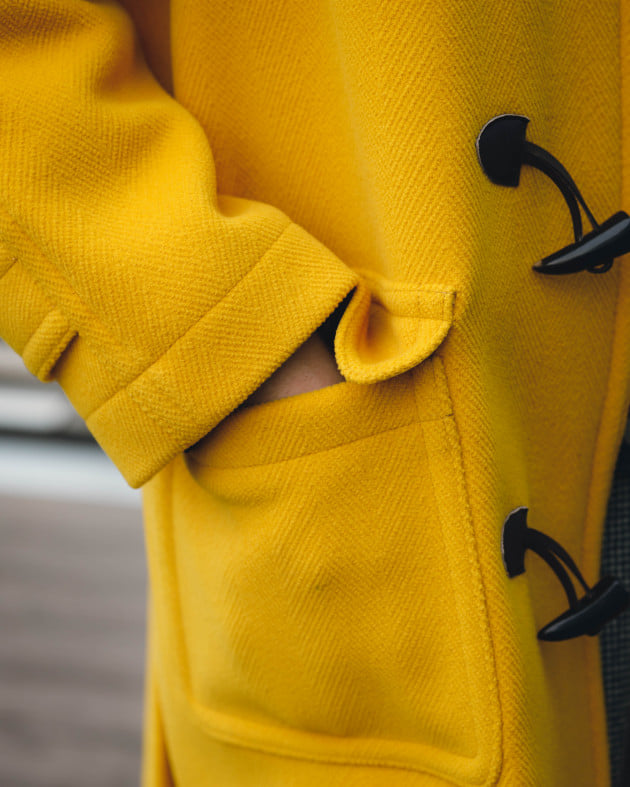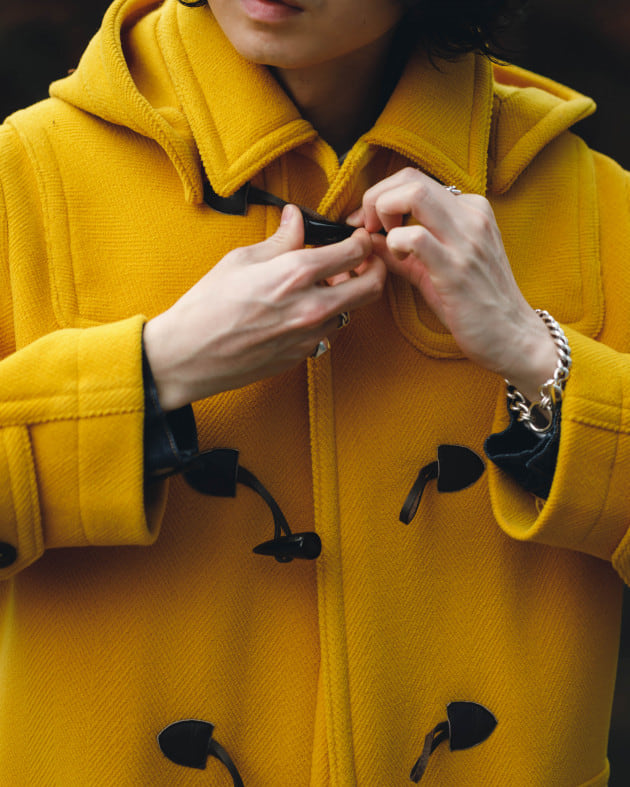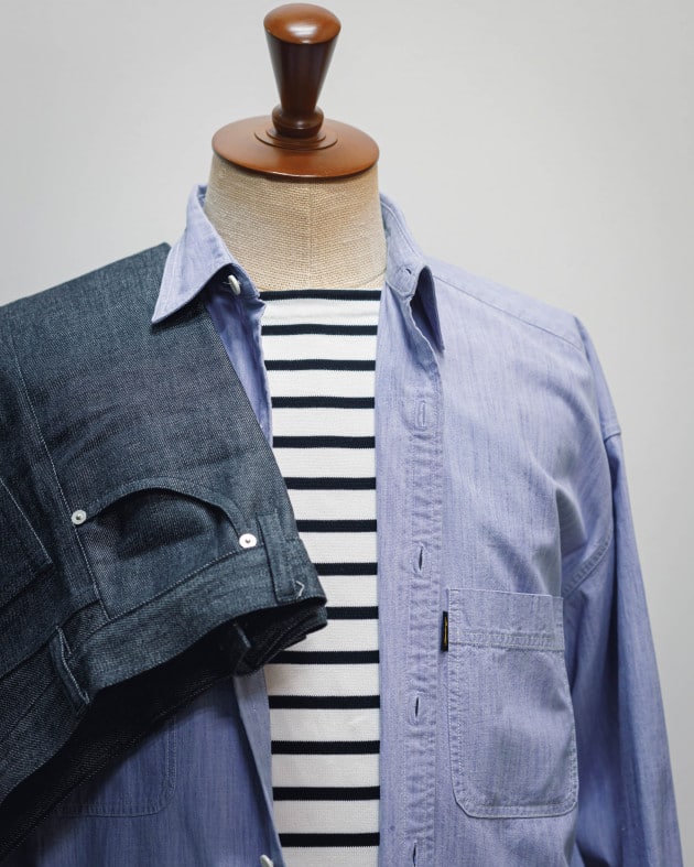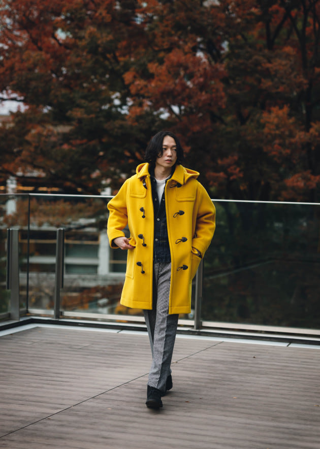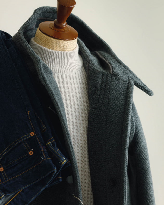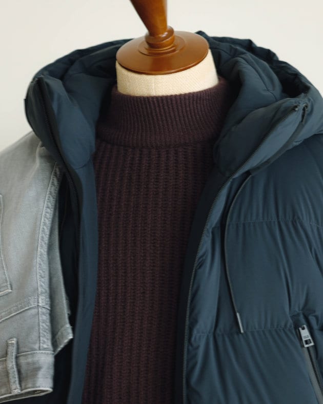 合わせ的にはあまり難しく考えずシンプルコーディネートでいいかな、という印象です。ウールスラックスを合わせるとクリーンなカジュアルスタイルに。