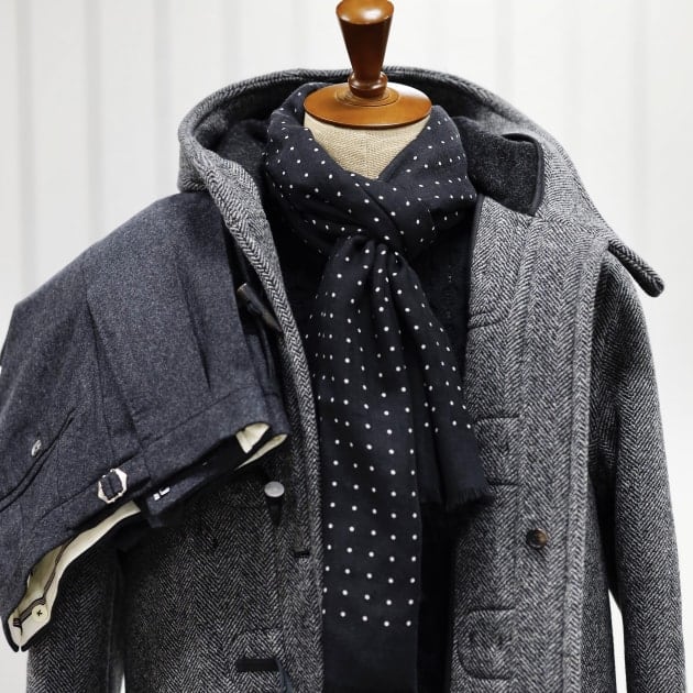 細かいハウンドトゥース柄のウールスラックスを合わせました。さり気なく柄を加えると、コーディネートに立体感が出ます。リジットデニムなんかも合わせ的には良さそうですね。ご参考まで。