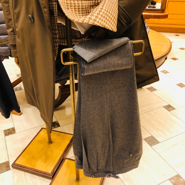 パンツは正統派のグレースラックス。さらっとした見え方と履き心地のフレスコ素材は、これからのシーズンの強い味方です。