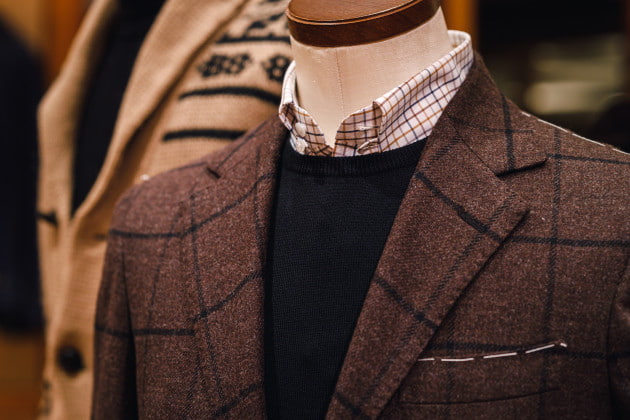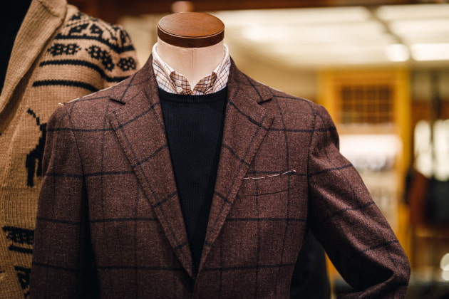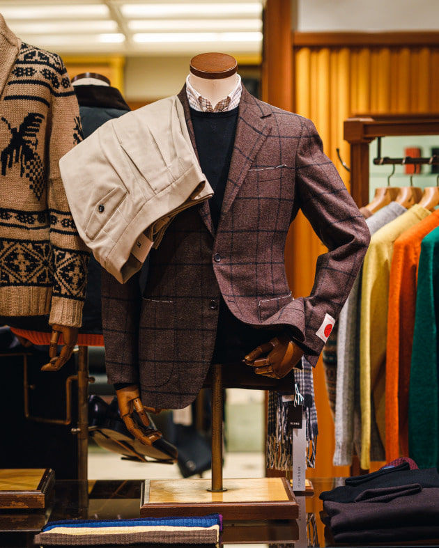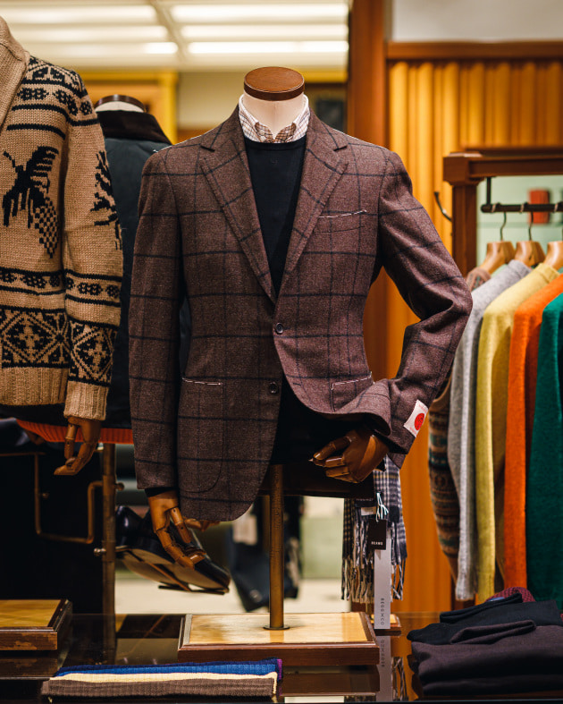 22年秋冬シーズン注目のトレンド柄、ヘリンボーンとの相性が非常に良いタッタソール。他にもツイードやコーデュロイ素材などヘリテージなアイテムと合わせたいですね。