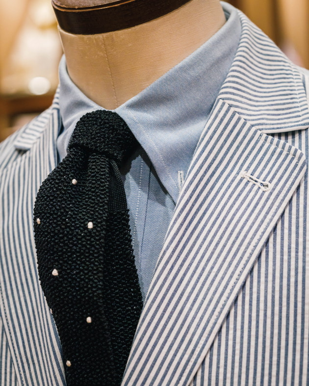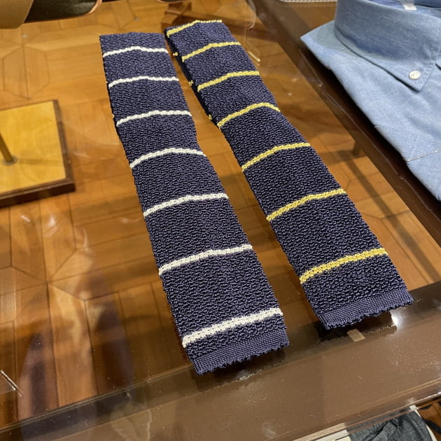 春夏シーズンのコーディネートに使い易いニットタイです。こちらも是非店頭でご覧くださいませ。