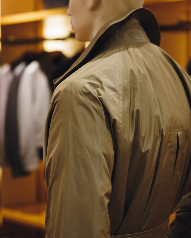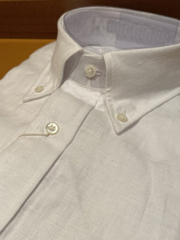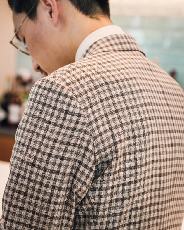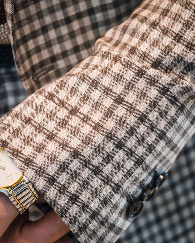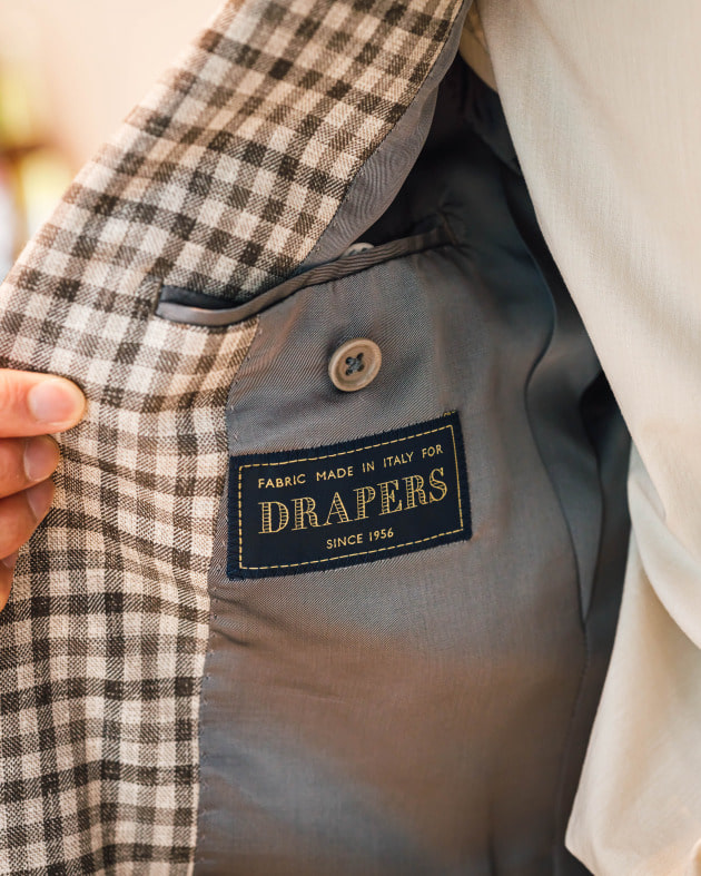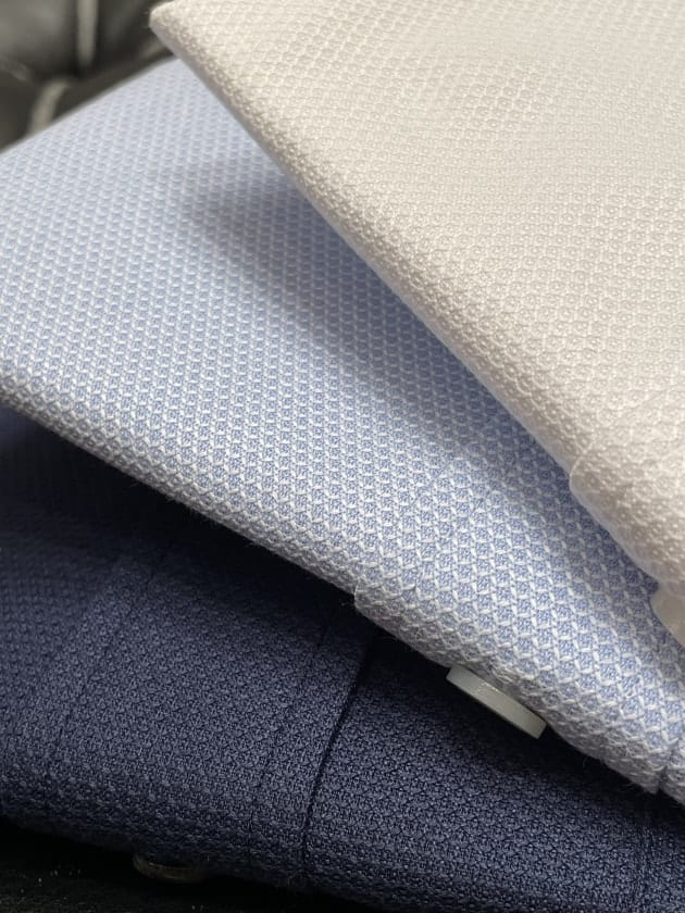 イタリア生地です。TESSUTI SONDRIOのリネン59%コットン40%ポリウレタン1%生地。軽くて柔らかいタッチです。あまりゴワゴワした感じはなく、夏に向けて使い易そうな素材感と感じます。