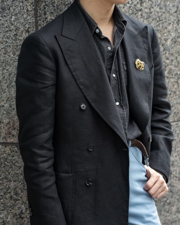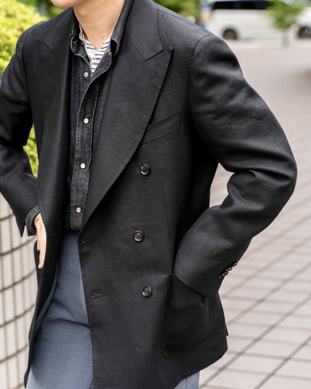 パンツは2アウトプリーツのサイドアジャスター型です。パンツのディティールもイイ感じですよね。
