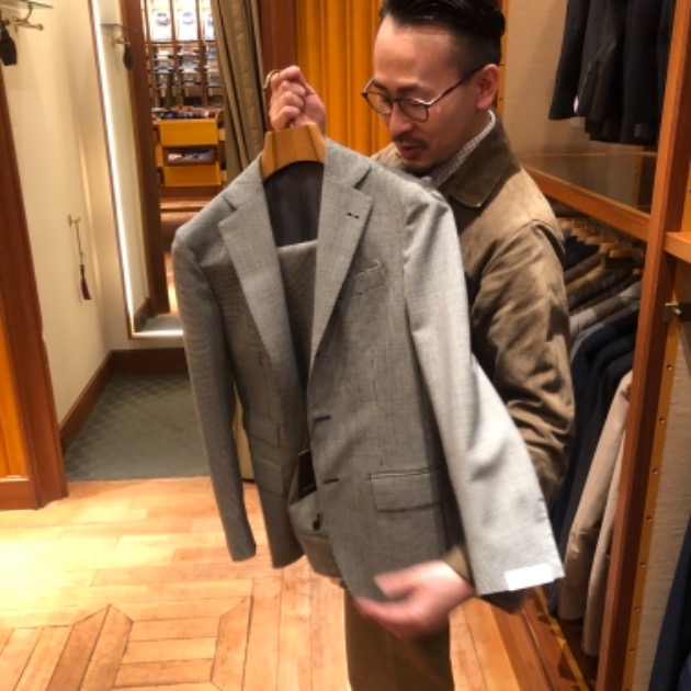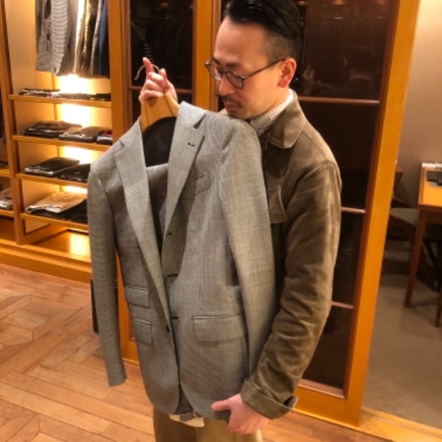 とは言えそれほどクセは強くなく、ドライタッチでややシャリ感のある柔らかいタッチです。春夏ジャケットらしく明るいトーンの見え方で上品さが感じられるジャケットに仕上がっております。