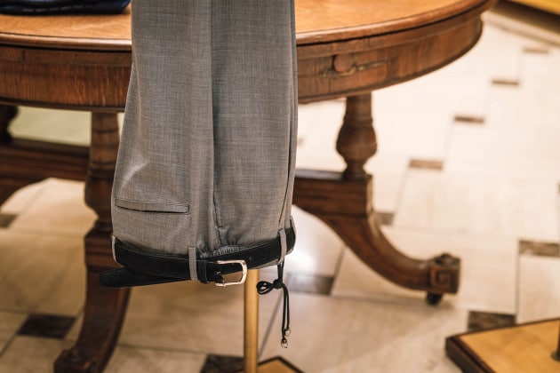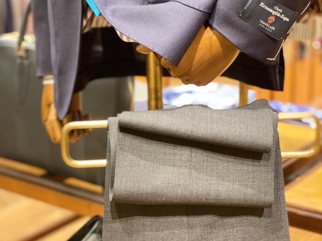 パンツはサイドアジャスターに緩やかなテーパードシルエット。カジュアルなスーツを敢えてクラシカルなディテールで。バランス感がこなれてます。