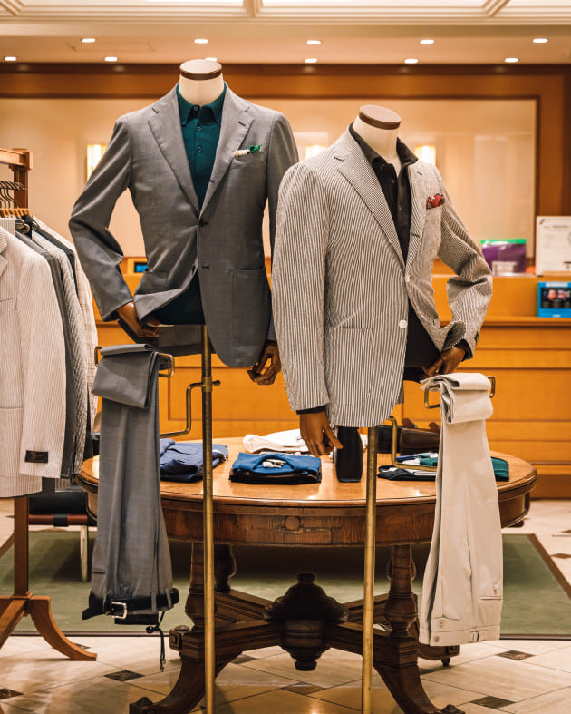 〈Custom Tailor BEAMS〉で仕立てた一着は、ブルー×ホワイトのオーセンティックなシアサッカー。