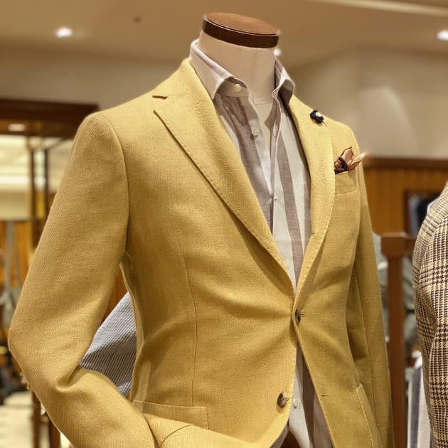 特有の凹凸感ある生地感が柔らかさとほどよいカジュアルさを与えるシアサッカー。軽く、さらっとした質感もこのシーズンには非常に重宝するアイテム。