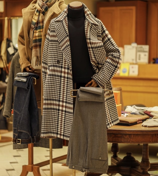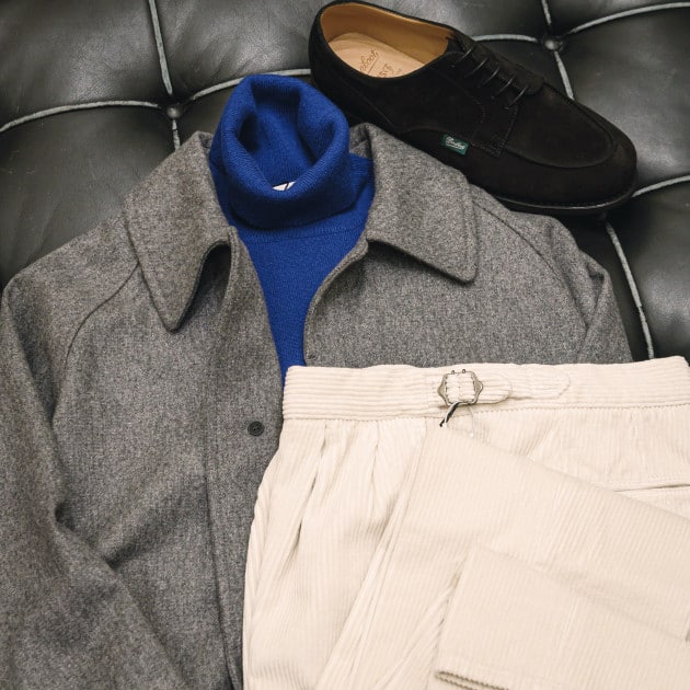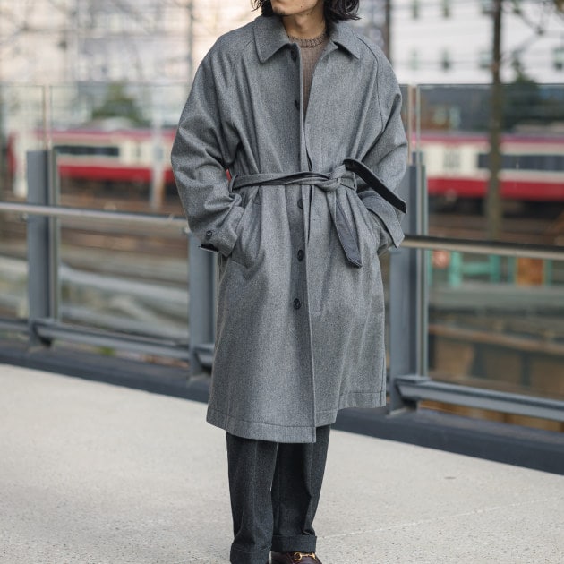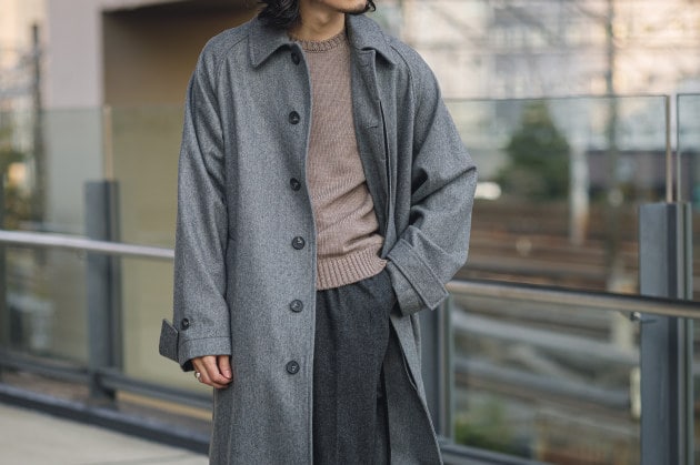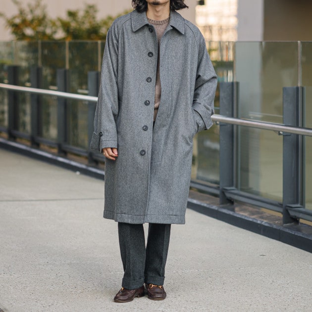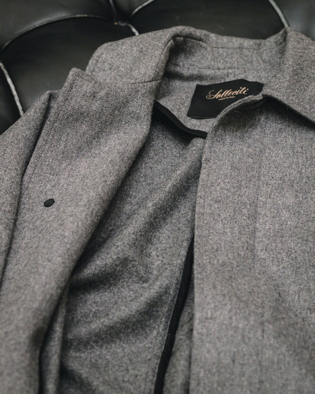 イタリアの高級ウェアメーカー<Solleciti>。今回は柔らかなグレーのコートを別注。