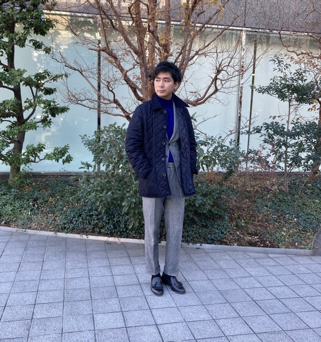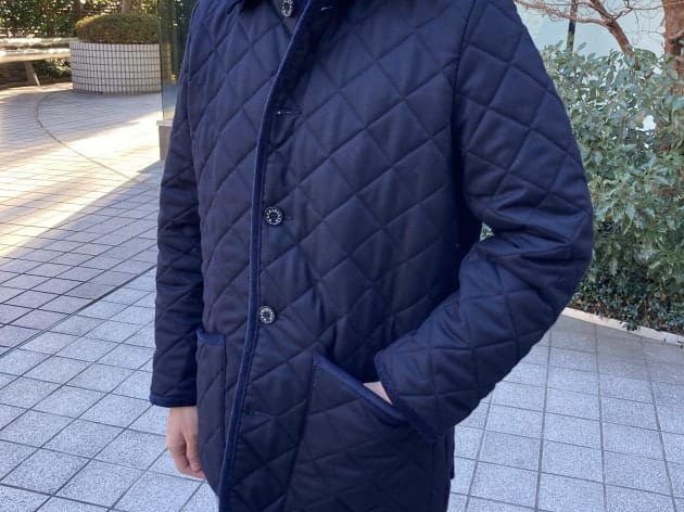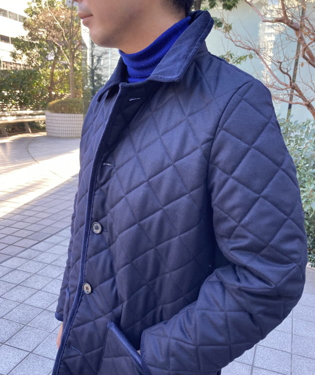 薄手のキルティングですが、ジャケットの上にお召しいただければ、割と冬でも暖かくきていただけるかと。
