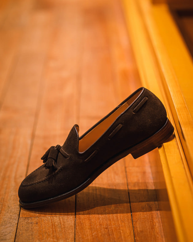 トップスは<BEAMS F>オリジナルのハリントンジャケット。先日のブログでウール生地の茶色ハウンドトゥースをご紹介しましたが、生地違いです。コットン/ポリエステル素材のギャバジン。クラシカルなソラーロ調の表情です。
