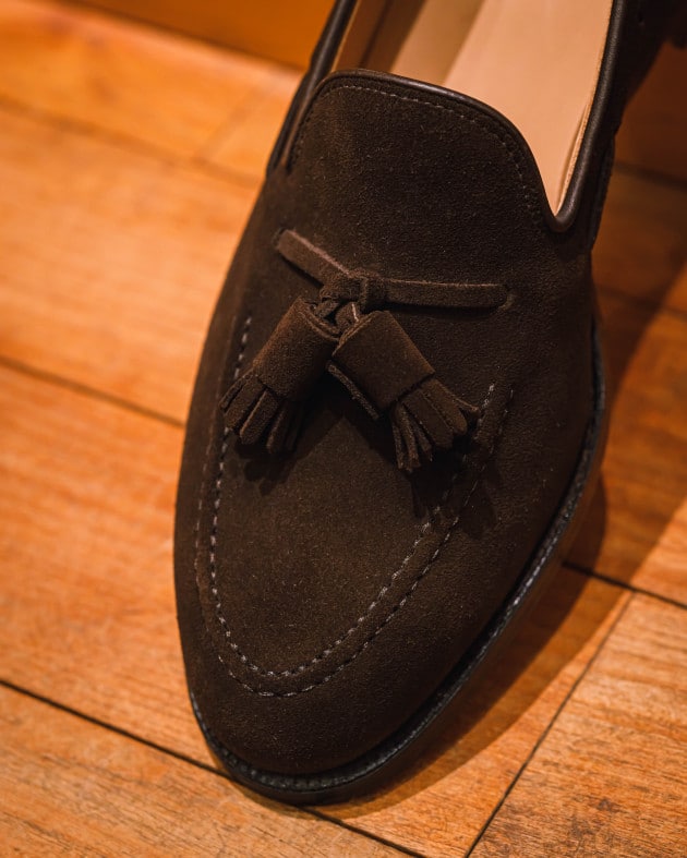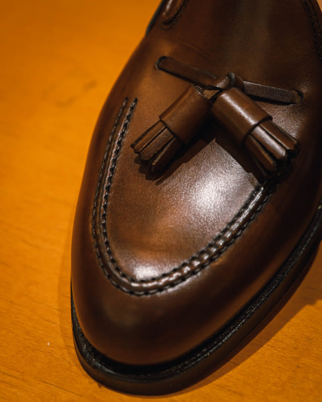<personality>のストライプネクタイはかなり織り感の強いシルク生地。カジュアルスタイルにも相性が良いネクタイだと思います。<TAGLIATORE>ジレはBROWNカラーのウールヘリンボーン。色使いと素材のコンビネーションが秋冬シーズンらしい雰囲気かなと。