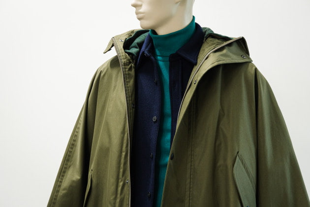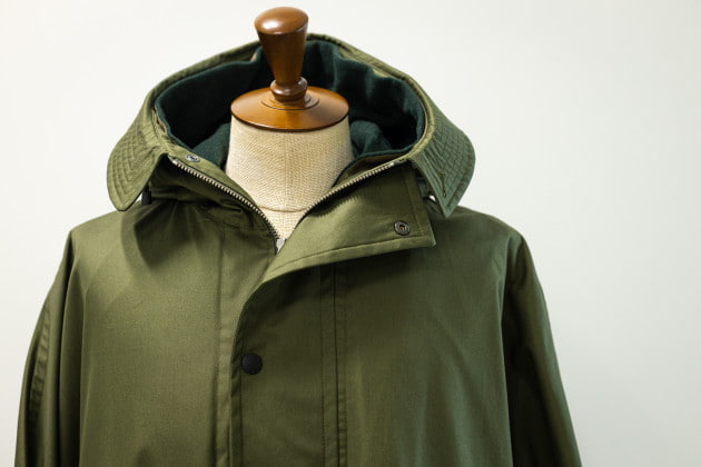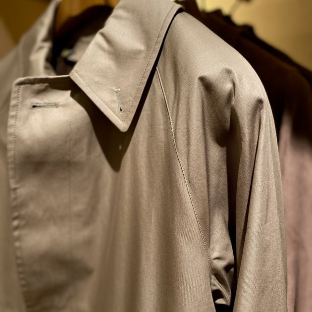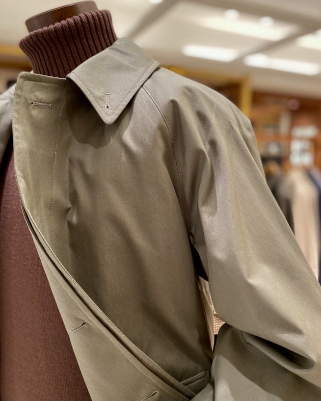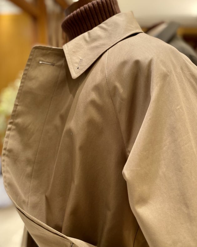 ミリタリーな雰囲気のこちらのジャケットは、英国の老舗生地メーカー<Brisbane Moss>のコットンツイルを使用した別注アイテム。バックベルトやダーツの細かなディテールがクラシカルなルックスです。裏なしの軽めの作りなので、これからのシーズンにさらっと羽織れる一着。