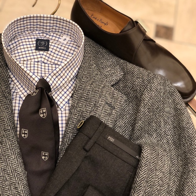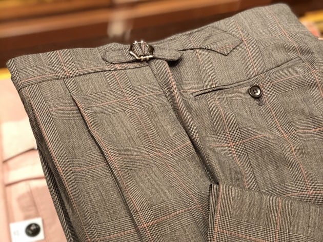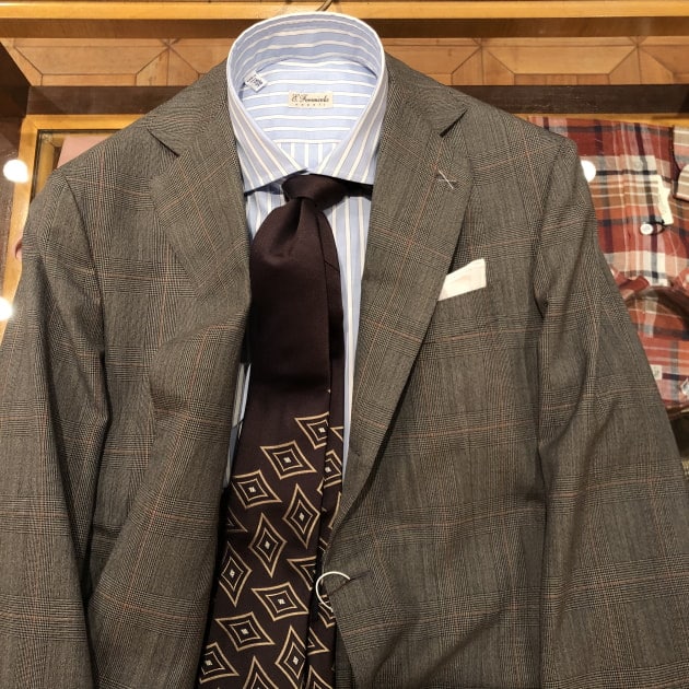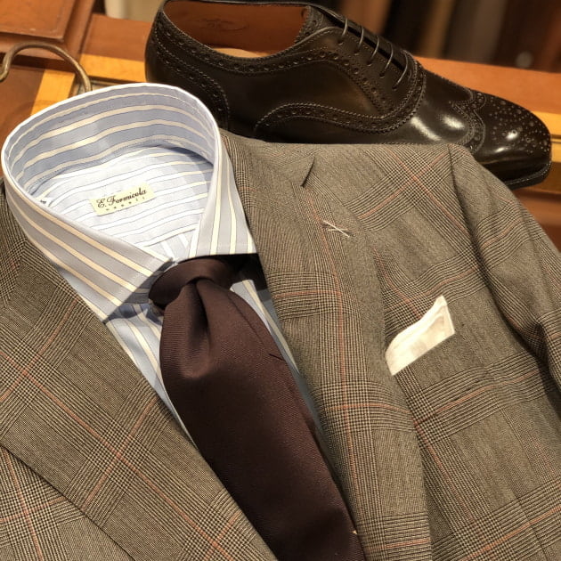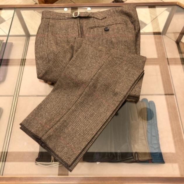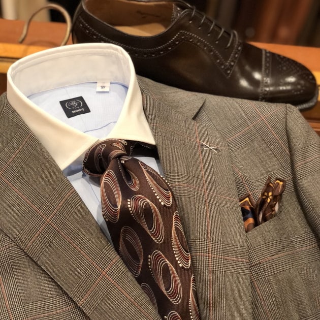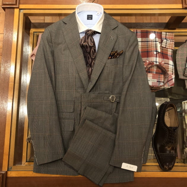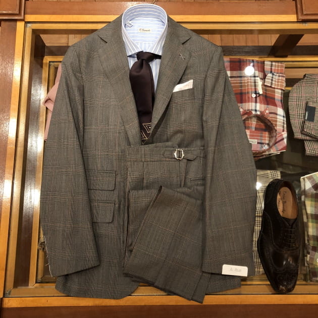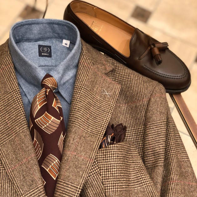 英国調のグレンプレイドがオーセンティックな雰囲気のこちら。落ち着いたブラウンの色合いもコーディネートに馴染みやすそうです。