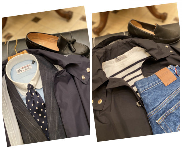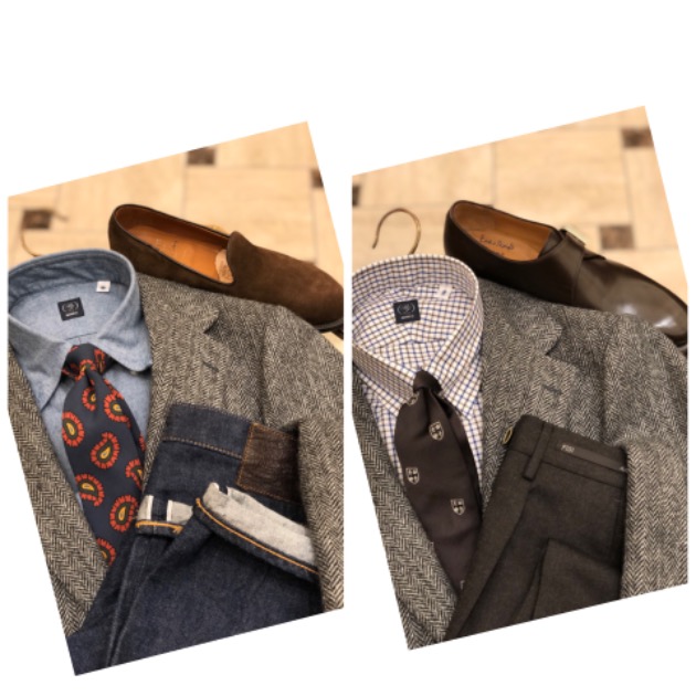 個性が出た2つのジャケットコーディネート。英国調のジャケットをオサムマンさんはイタリアンテイストを、ごっちはアメリカンテイストをミックスさせていますね!