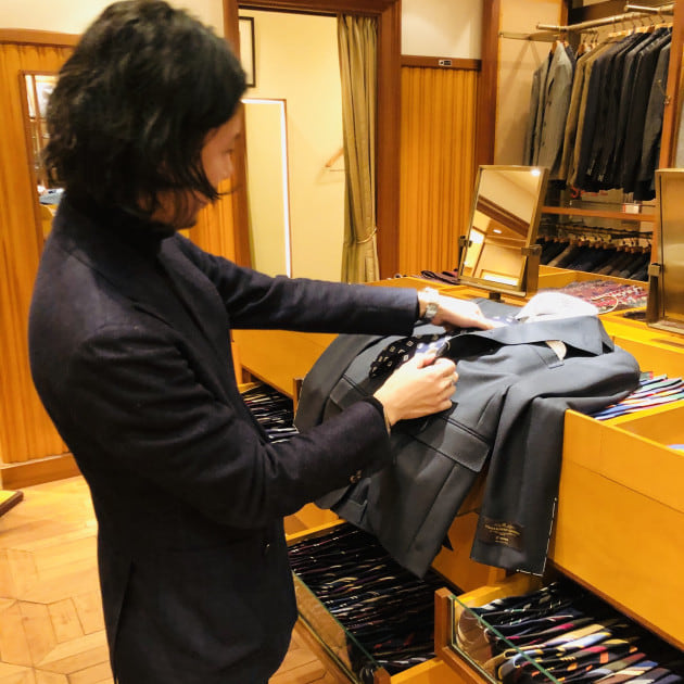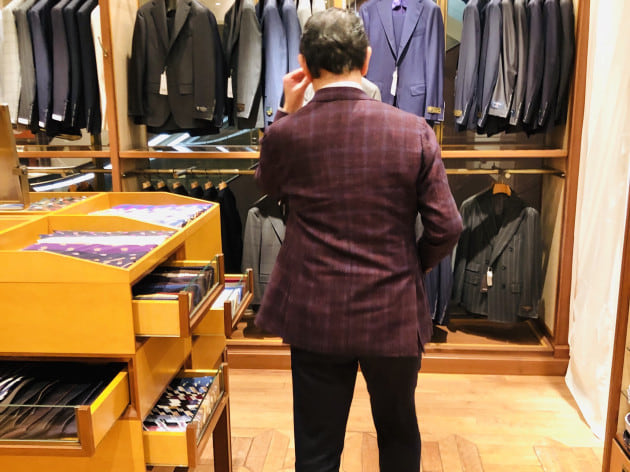 自分が購入予定のジャケットの合わせを真剣に考え中。