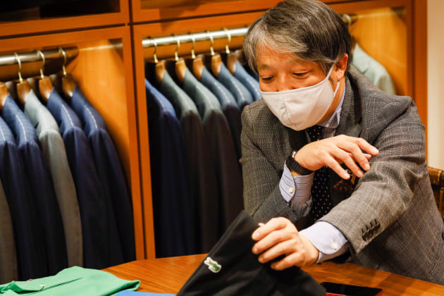 ですが、昨年秋冬から登場した新型の下掛け6ボタンダブルが試着してみるとかなり調子が良く、着丈のバランスなどもクリアしていたので本気で購入を検討していました。