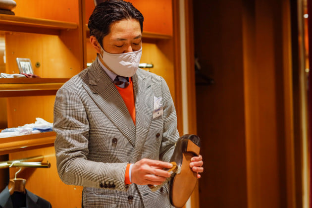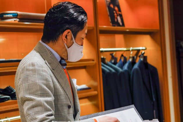 カスタムテーラーも考えたのですが、ナポリらしいしっかり入ったダブルスティッチや、カミーチャ袖などのディテールは再現できません。