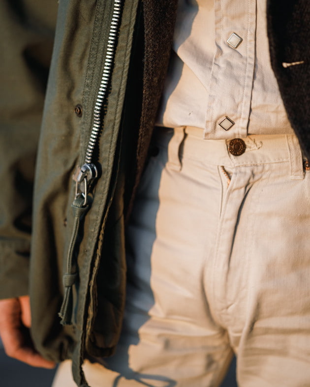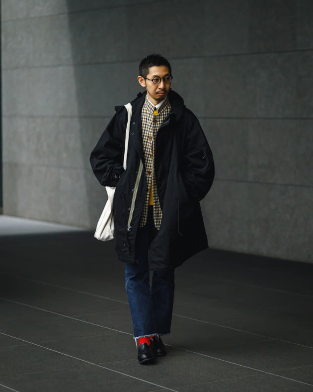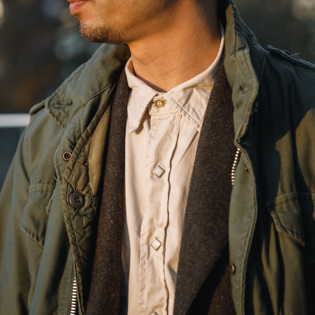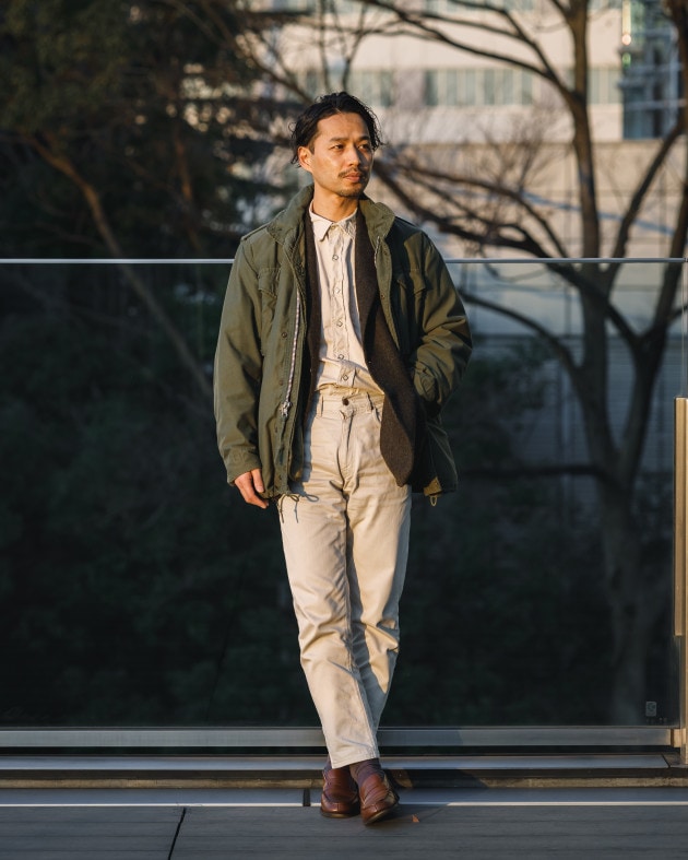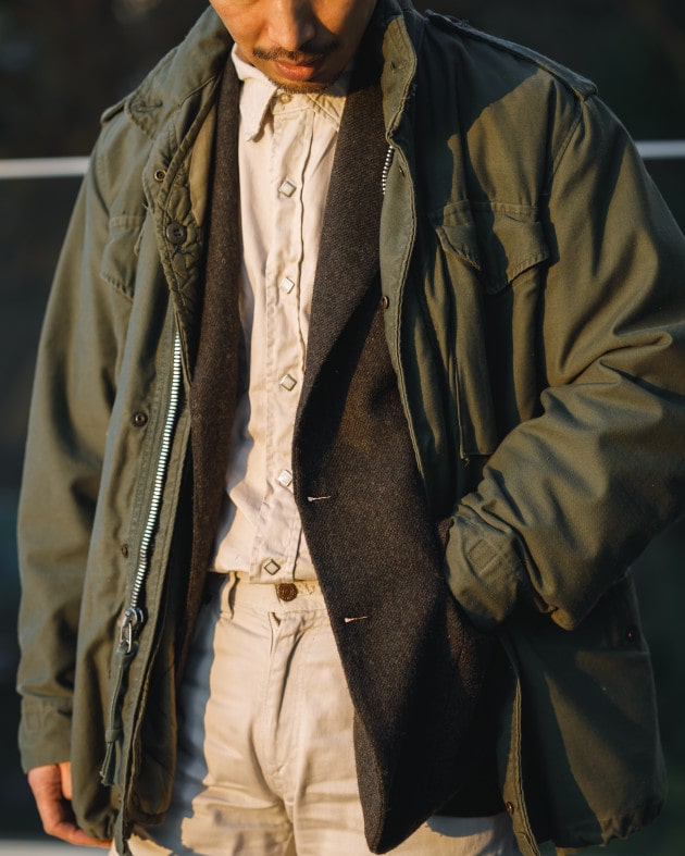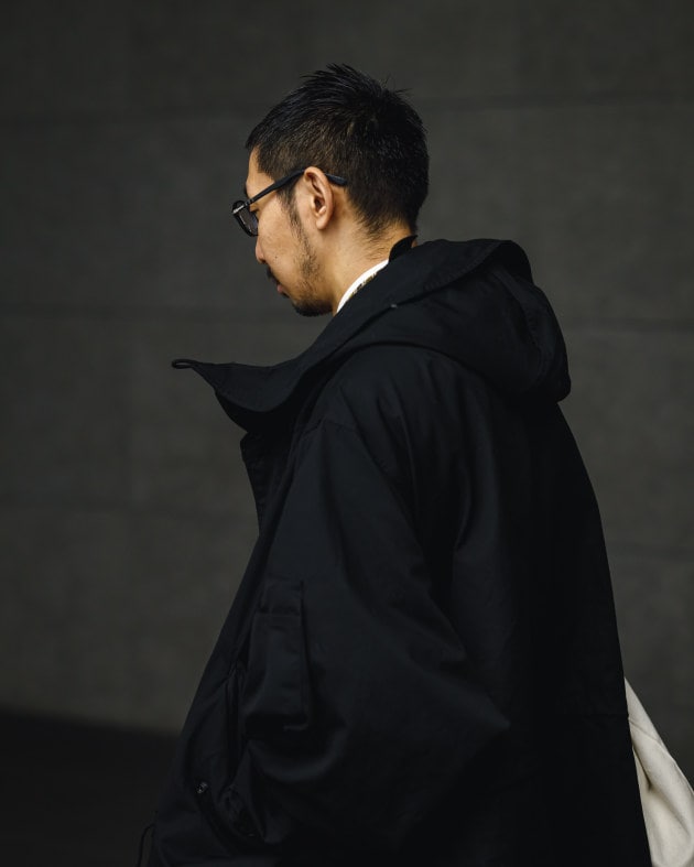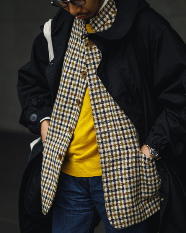 ややボリュームのあるリブも良いですね。これがある事でウェイトのバランスが取りやすく、ジャケットのインナーはもちろんの事、ニットの上からコートを羽織ったスタイルも成立させてくれます。