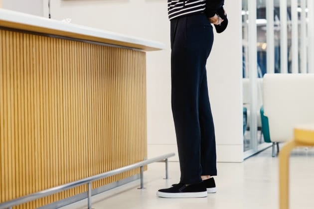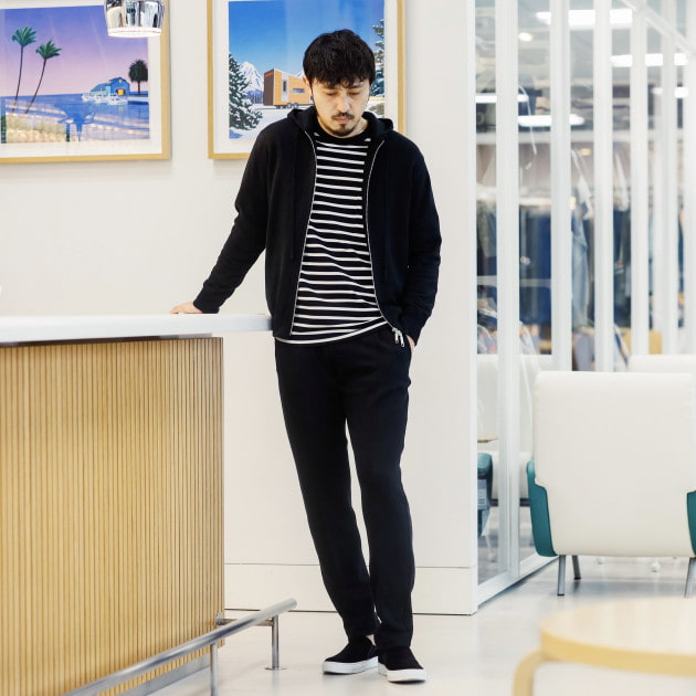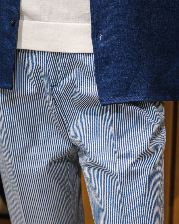 シンプルな夏カジュアルスタイルをイメージしました。ポイントはパンツの合わせ。ワイドシルエットのスラックスタイプです。EASYパンツよりも少し大人見えしますよね。