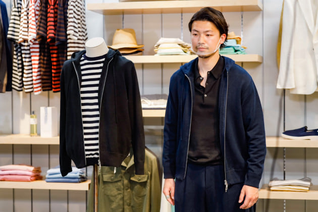 本日のご紹介は<Blu Bre>です。今季は洒落た雰囲気のニットシャツを展開しております。