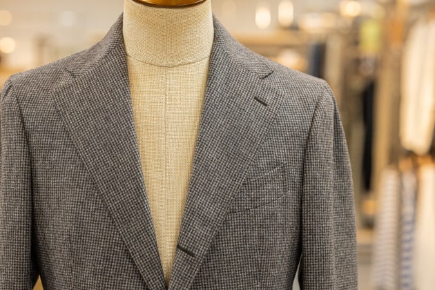 上品な配色のウィンドーペーンジャケットは<TITO ALLEGRETTO>。BEAMSではすっかり人気ブランドの1つとなりましたね。チェックされているお客様も多いブランドだと思います。