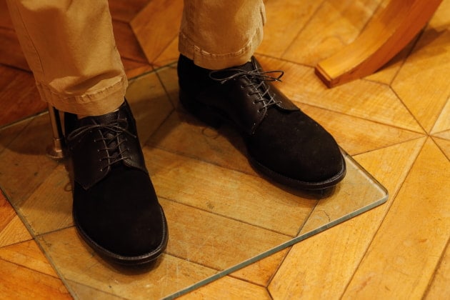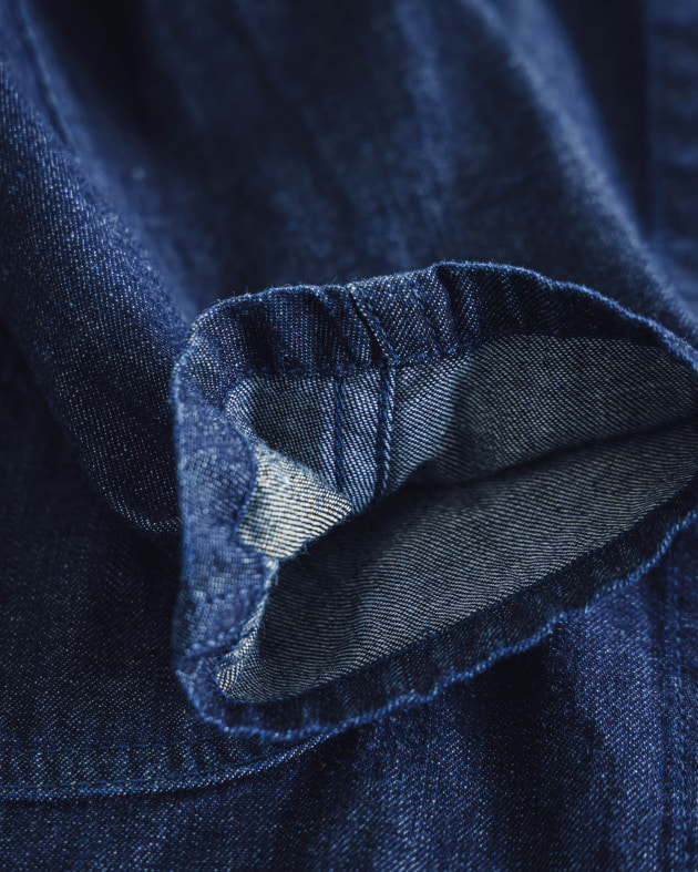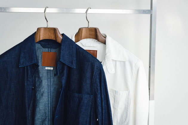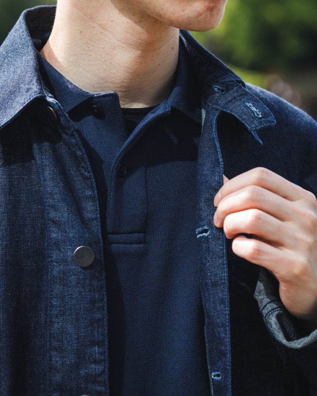 別注のバスクシャツ。インラインより、着丈と襟の開き具合を変更しています。