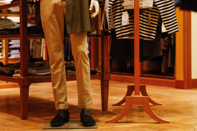 チラッと見えるボーダーが良いアクセントに。敢えてスラックスを合わせると、さらに垢抜けた雰囲気になりますね。