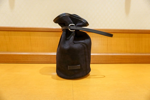 ごっちが鋭い目つきで持っている、レザーの巾着です!