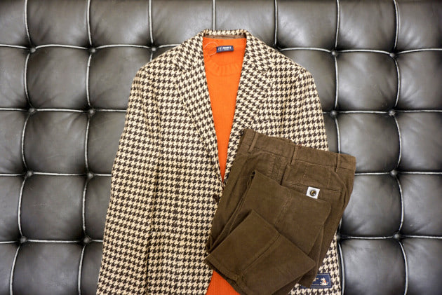 こちらの<Belvest>ハウンドトゥースジャケットも秋冬の新作。