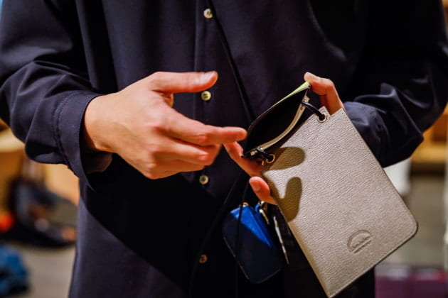 イエロー〜ブラウンで構成したドレッシーなカジュアルスタイル。チェンジポケットにベルトレス、サイドアジャスターなど、クラシカルなディテールがも多いのもポイントです。