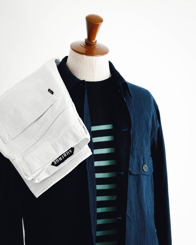 パンツはホワイトなどがクリーンなムードも添えられて良さそうです。もちろん、デニムやコットンパンツで男っぽく寄せるスタイルも格好良くておすすめです。