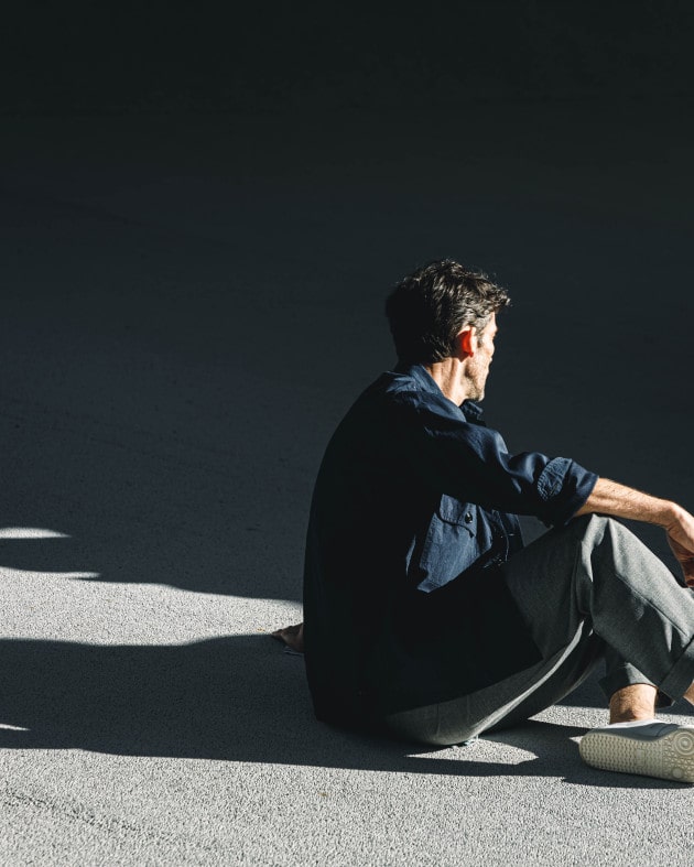 ボリュームのあるコーデュロイの襟から落ちるなだらかなドレープ。男らしくも柔らかい空気感がモダンな一着です。