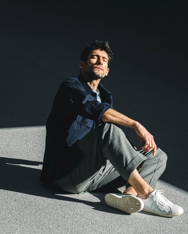 短い着丈を前に出して長短のミックス感を愉しむのも良いですが、このようにシャープにまとめると温もりあるレイヤードをより軽快に見せられます。がっしりとした質感のものを重ねながらもすっきりとしたルックスに。