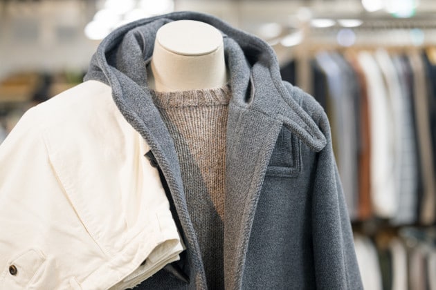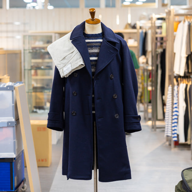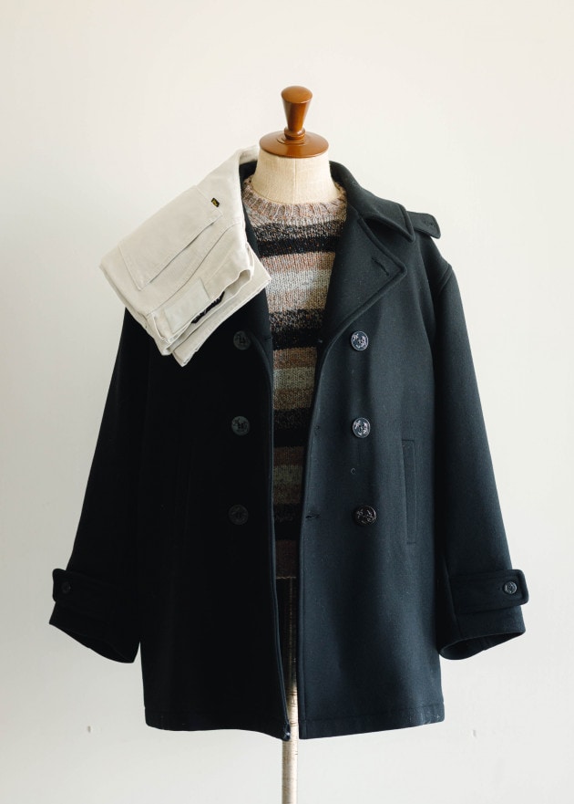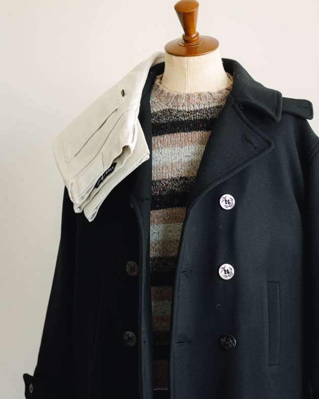 短い着丈にゆったりとしたボディが特徴的なモデル「TRANSPORT」。こちらはライトメルトン素材を載せた〈BEAMS F〉の別注アイテム。