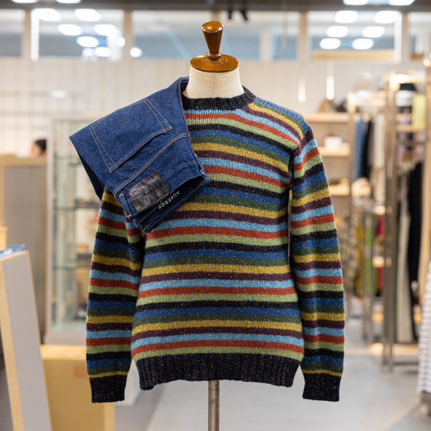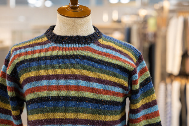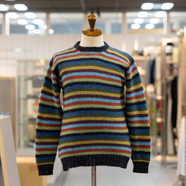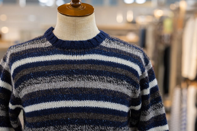 Macalastair × BEAMS F / 別注 ウールシルク ボーダー クルーネックニット