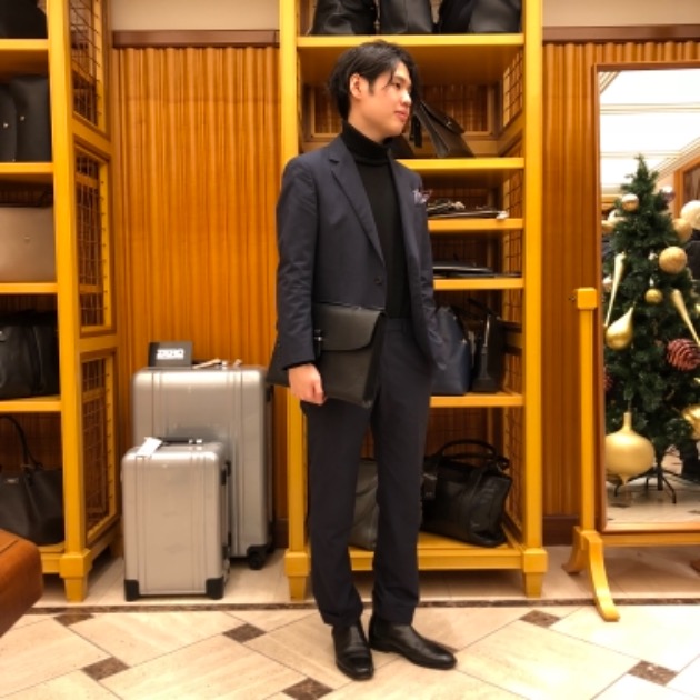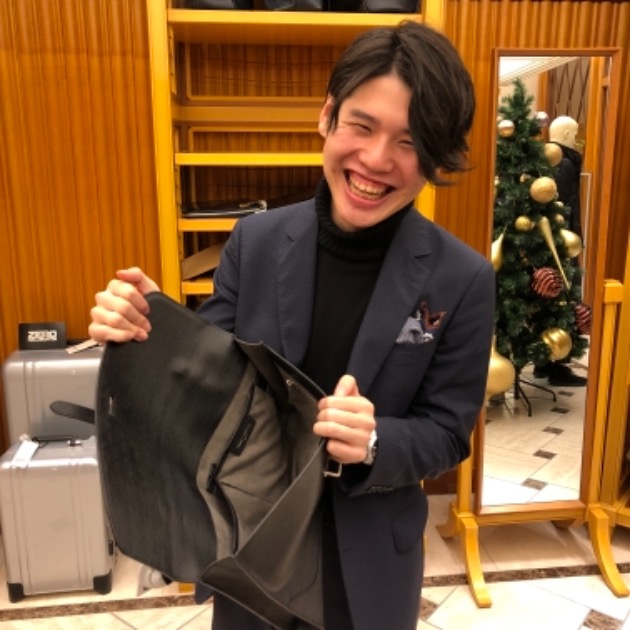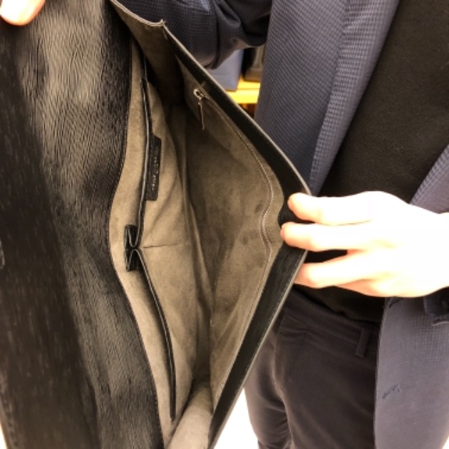 マイルドさんがテンション高めで抱えているのは、PELLE MORBIDAに別注したレザーのクラッチバッグ!