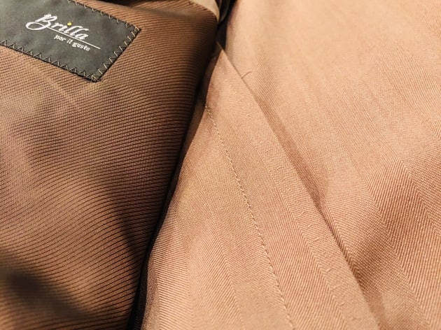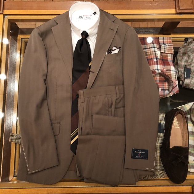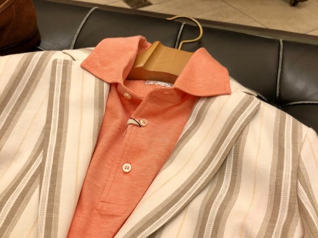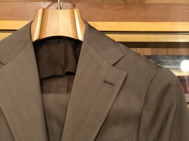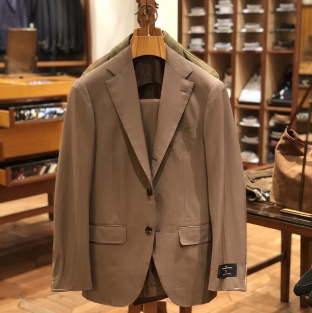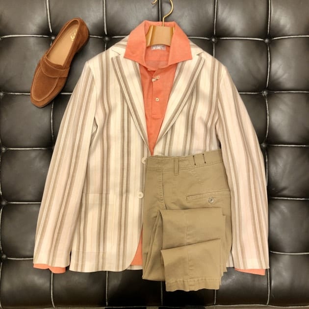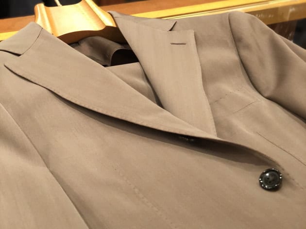 ダブルステッチにパッチポケットのナポリらしく軽快なディテール。レーシンググリーンの裏地もこなれています。